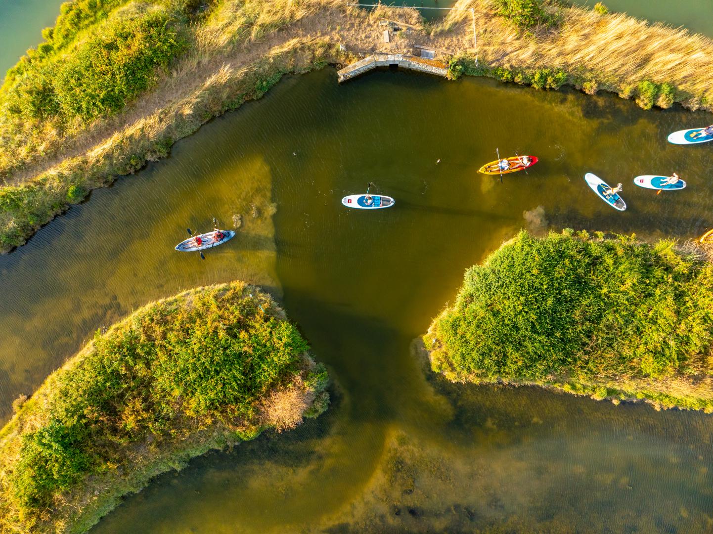 Stand-up paddling is an interesting alternative to the pleasures of surfing and discovering the island, and a sport in its own right. It combines surfing, racing and walking on the sea or in the heart of the marshes. Once you've acquired the "take off" and the paddle in hand, you'll have a different view of the island, and the chance to take an unusual tour of the fauna, flora and heritage, guided by qualified instructors.