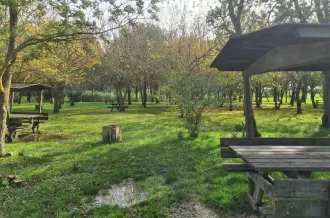 And for the more sporty, there's a fitness trail equipped with 11 wooden modules: beam jump, run-up, long jump, parallel bars...
