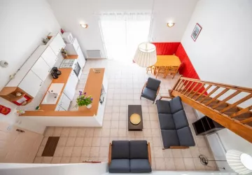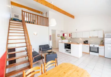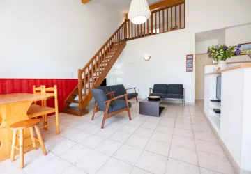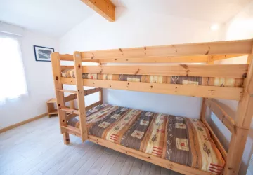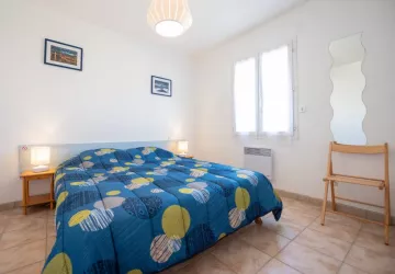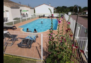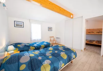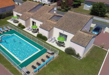 A 70m² villa with a garden and terrace around a heated swimming pool offers a living room with open-plan kitchen, a shower room and separate toilet, a bedroom with a 160cm bed, a bedroom with two 90cm beds and a bedroom with a 90cm bunk bed.