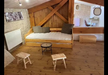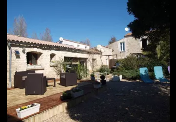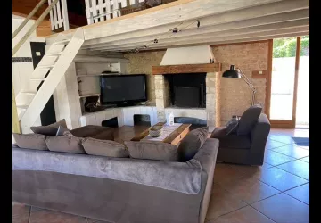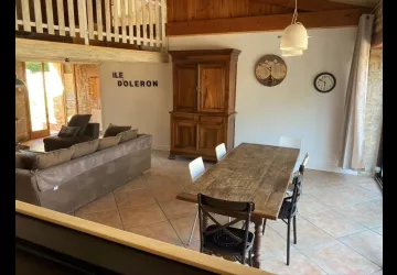 Le Loft "Fort-Boyard" is a detached house forming part of a complex of 9 apartments (2 to 6 people) with shared garden and swimming pool, close to the town center and shopping area of Dolus d'Oléron. This 6-person house has its own entrance, a south-facing terrace overlooking the pool, a courtyard with garden furniture and barbecue, and private parking spaces. The first floor comprises a warm and spacious main room with a stone fireplace in the living room, a large fully-equipped kitchen, a bathroom with bath and double basin, and separate WC.