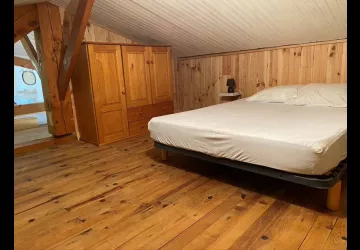 Upstairs, the mezzanine features a cot and a pull-out bed (including 2 90cm beds that also serve as a sofa) and leads to 2 sleeping areas: an open-plan bedroom with a 140cm bed and a sofa bed, and another open-plan bedroom with 2 80cm beds forming a large 160cm bed.
