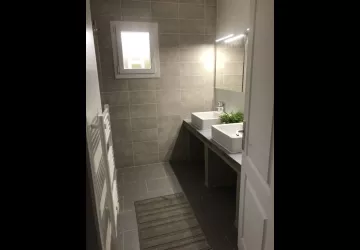 The two bedrooms: one with 1 x 160cm bed and the second with 2 x 90cm beds, each with a spacious closet. Recently renovated bathroom with Italian shower, 2 sinks and storage space. Baby equipment includes cot, booster chair and bathtub.