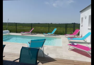 You will relax on the 40 m2 wooden terrace or on your deckchair (included in the rental) by the heated swimming pool from May to September from where you can enjoy the panorama of the Oléronaise countryside; the house overlooking the vineyards, an old and charming dovecote and the forest in the distance.
