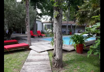 Detached 160m2 house on 900m2 of enclosed land planted with trees, located in the heart of the national forest and close to the Allassins beach and cycle paths.