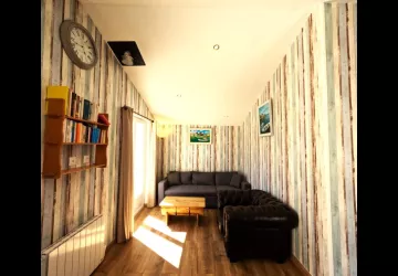 It comprises two bedrooms: one with a 140cm bed and one with a 160cm bed, living room, fitted kitchen, shower room, separate toilet, laundry room.