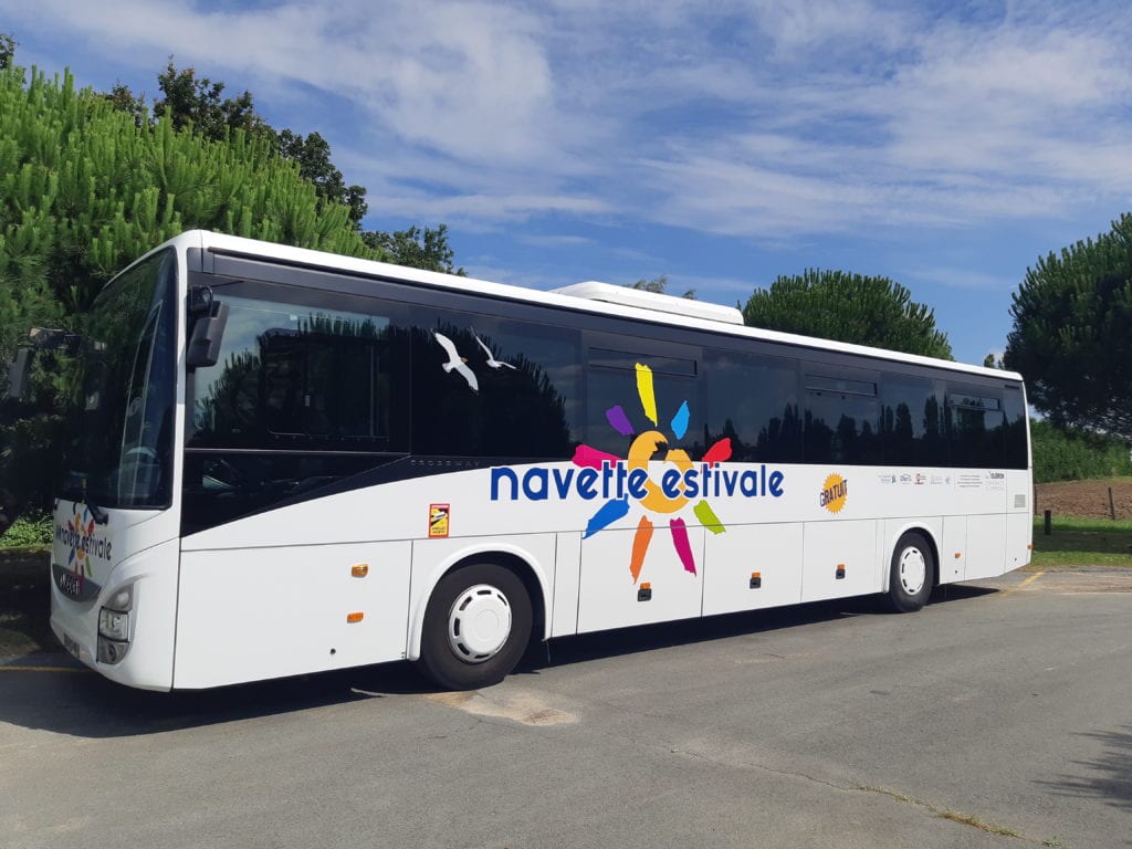 The summer shuttle is back in service in 2025! This free summer transport service is organized by the Communauté de communes de l'île d'Oléron, in partnership with Oleron's environmentally-friendly campsites and hotels.